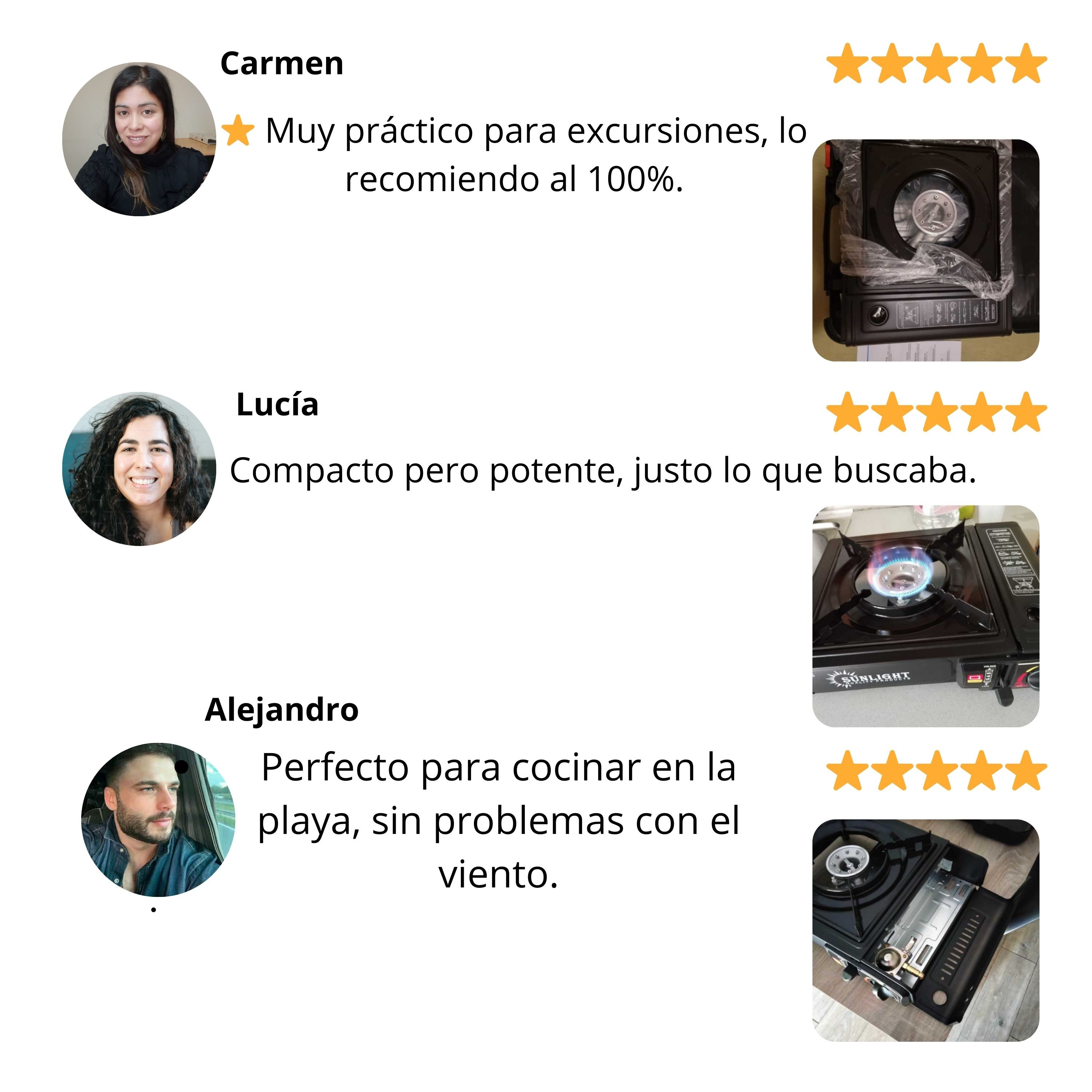 Los viajeros suelen enfrentarse a un gran problema para calentar o cocinar su comida durante los viajes o acampadas, especialmente en lugares sin electricidad o restaurantes cercanos. Con esta cocina de gas portátil, podrás preparar tu café, calentar tu comida o incluso cocinar una comida completa de forma fácil y en cualquier lugar. Su diseño es ligero y seguro, ideal para viajes, playa y excursiones al aire libre.